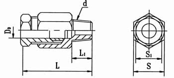標(biāo)記示例: 管子外徑D0為6,螺紋d為R1/8的管接頭; 管接頭6-R1/8 ZY431.1.00 |