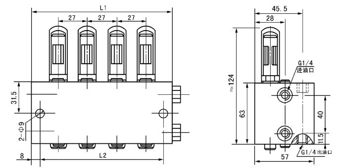 分配器適用于公稱壓力為40MPa的雙線式干油集中潤滑系統中。它在兩條供油主管交替的供油壓力作用下,直接由供油壓力控制活塞動作給油,完成向潤滑點定量分配潤滑脂的功能。