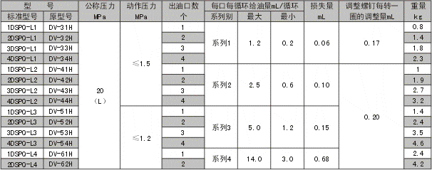 DSPQ-L型單向給油分配器出油口都在底部,分配器活塞正反向動作均從同一個給油口排油,系統每工作一次,各給油口均排油一次。
