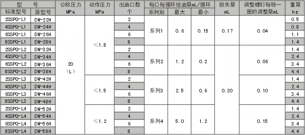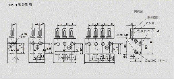 SSPQ-L型雙向出油的雙線分配器,在正面和下面都有出油口,活塞正向,反向排油時,正面出油口和下面出油口交替供送潤滑脂。